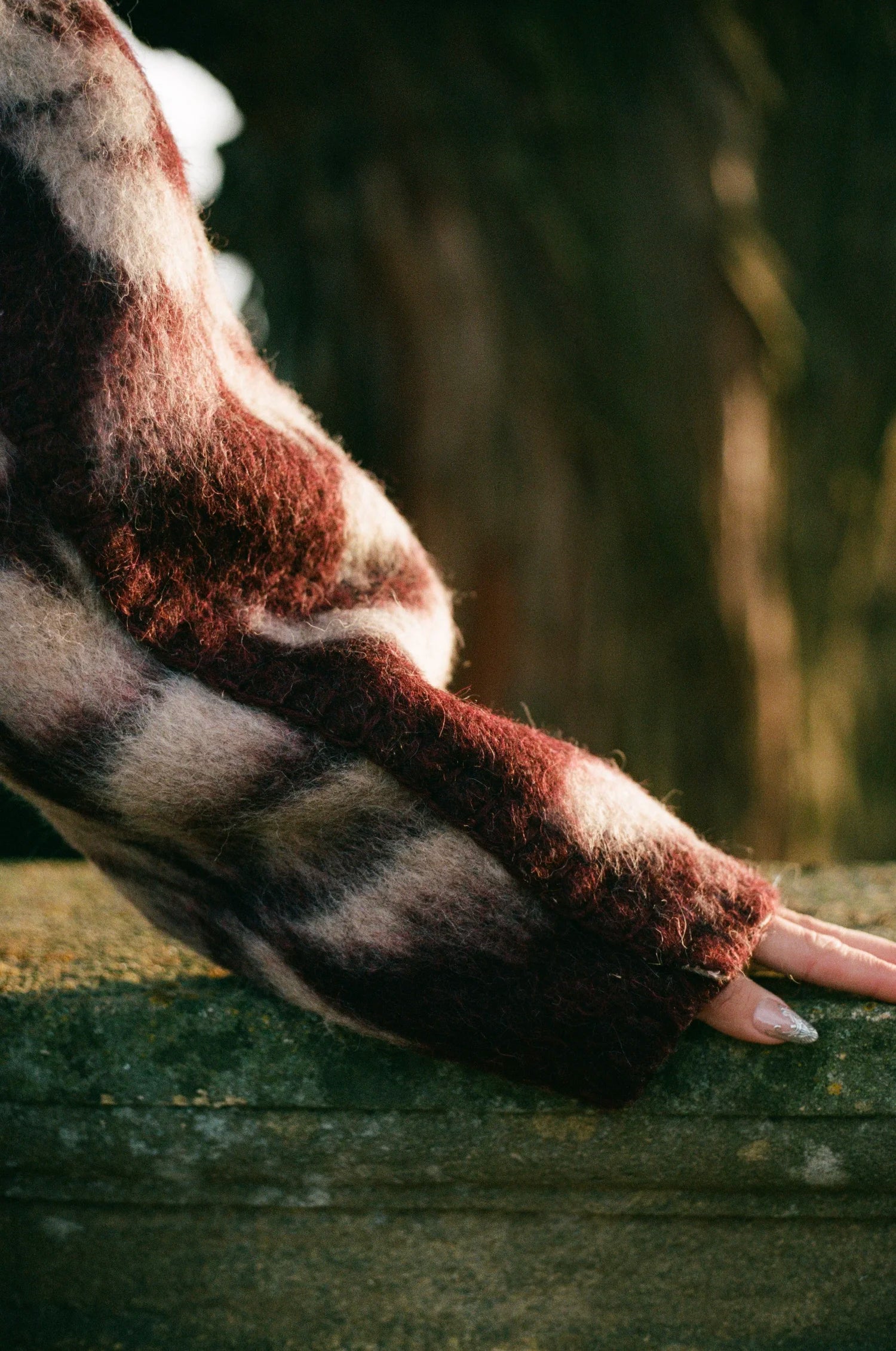 The textile is wool, handmade, and 100% upcycled.